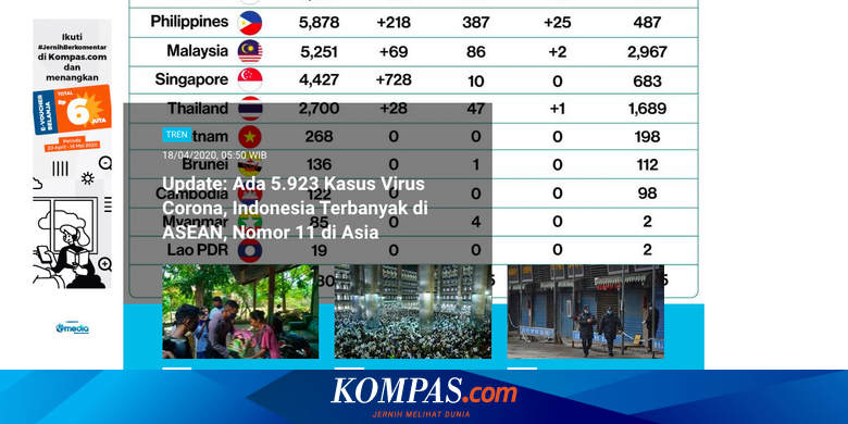 Berita mengenai update kasus virus corona di Indonesia masih menjadi salah satu berita yang paling banyak dibaca di laman Tren sepanjang Sabtu (18/4/2020) hingga Minggu (19/4/2020) pagi ini.