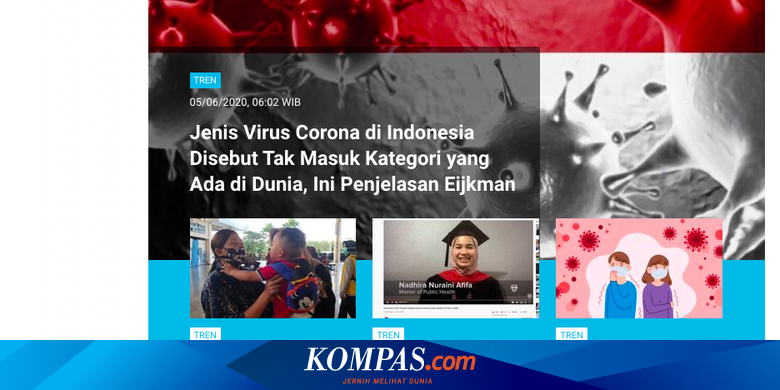 Berita mengenai jenis virus yang beredar di Indonesia menjadi salah satu yang paling banyak dibaca di laman Tren pada Jumat (5/6/2020) hingga Sabtu (6/6/2020) pagi.