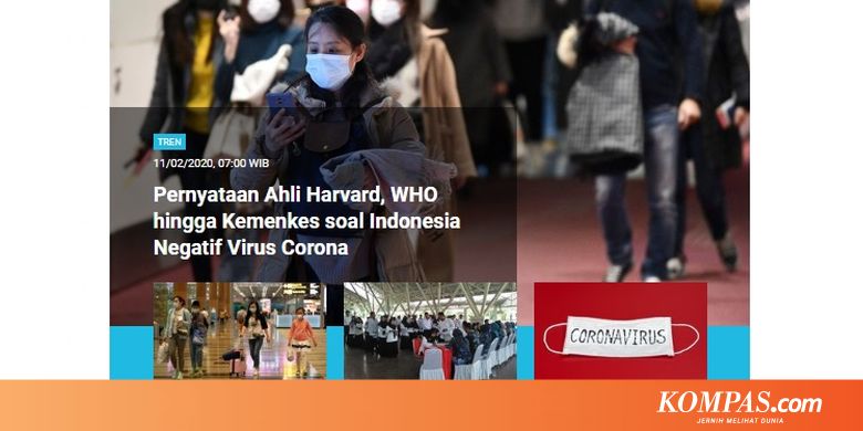 Sejauh ini, pemberitaan perihal virus corona masih menjadi perhatian pembaca di laman Tren. Terlebih hingga saat ini, belum ada satu pun kasus virus corona di Indonesia yang terkonfirmasi positif.