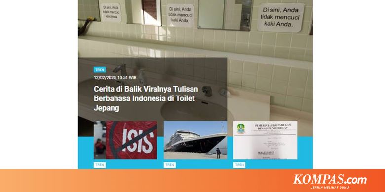 Disebutkan bahwa tulisan itu ada di sebuah toilet di Jepang. Berita mengenai foto viral ini merupakan salah satu berita yang banyak dibaca di laman Tren sepanjang Rabu (12/2/2020) hingga Kamis (13/2/2020) pagi ini.