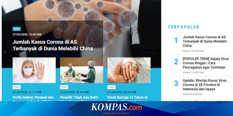 KOMPAS.com - Sejumlah informasi menghiasi laman Tren sepanjang Jumat (27/3/2020).