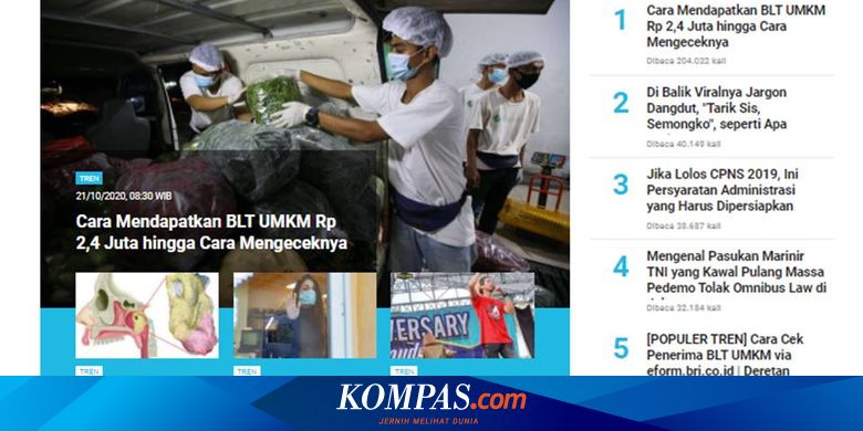 Informasi seputar BLT UMKM ini pun menjadi berita yang paling banyak dibaca di laman Tren sepanjang Rabu (21/10/2020) hingga Kamis (22/10/2020) pagi.