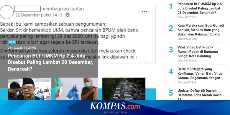 1. Benarkah pencairan BLT UMKM Rp 2,4 juta paling lambat 28 Desember?