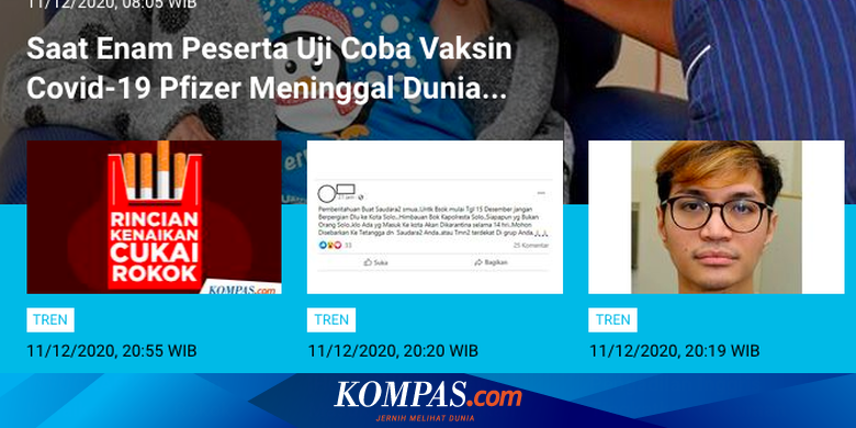 Berita tersebut menjadi salah satu yang populer di laman Tren sepanjang Jumat (11/12/2020) hingga Sabtu pagi (12/12/2020).