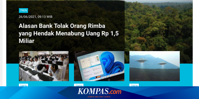 KOMPAS.com - Alasan bank menolak orang rimba di Jambi yang menabung Rp 1,5 Miliar menjadi berita yang paling banyak dibaca di kanal Tren, hingga Minggu (27/6/2021).