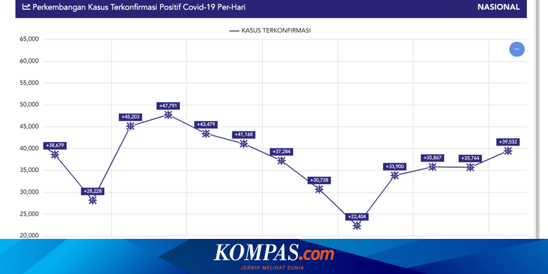 39.532 kasus baru, tertinggi dalam seminggu terakhir, hasil tes yang turun dibanding kemarin.