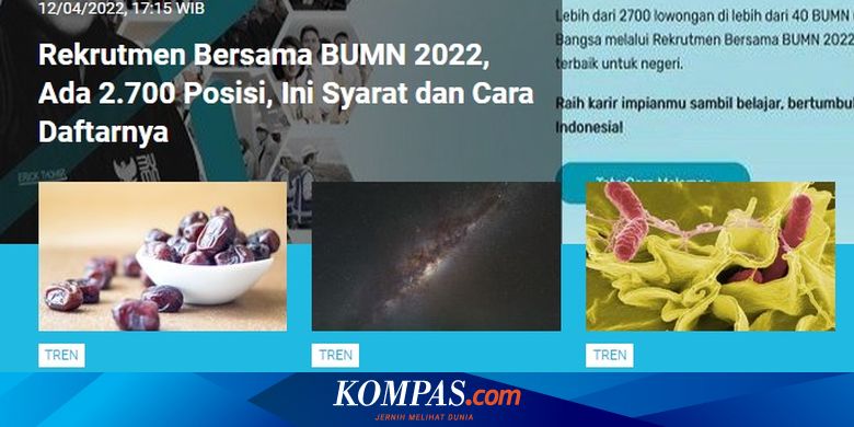 [POPULER TREN] Rekrutmen Bersama BUMN 2022 | Cara Daftar Mudik Gratis Kemenhub - Kompas.com - KOMPAS.com