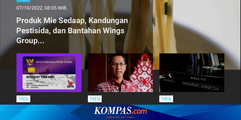 KOMPAS.com – Berikut berita terpopuler Tren hingga Sabtu (8/10/2022) pagi ini, salah satunya soal dugaan kandungan pestisida di Mie Sedaap dan bantahan dari Wings Group.