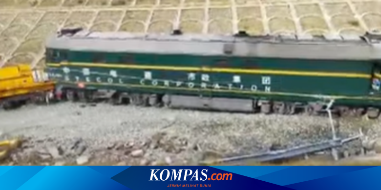 Pengunggah juga melampirkan video yang menunjukkan adanya lokomotif kereta berwarna hijau dan kuning yang anjlok.