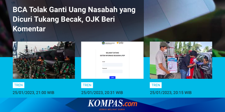 [POPULER TREN] Penjelasan OJK soal BCA Tolak Ganti Uang Nasabah Dicuri Tukang Ojek | Babinsa Azmiadi Gadaikan Motor untuk Urai Macet 16 Jam - Kompas.com - KOMPAS.com