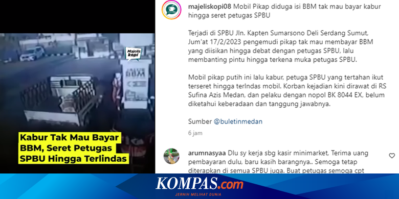 Viral, Video Pengemudi Pikap Disebut Kabur Tak Mau Bayar hingga Seret Petugas SPBU, Ini Kata Pertamina - Kompas.com - KOMPAS.com