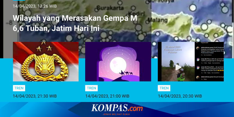 Selain berita Gempa Tuban, ada sejumlah berita populer lainnya yang menghiasi laman Tren sepanjang Jumat (14/4/2023) hingga Sabtu (15/4/2023).