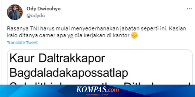 Warganet menilai, singkatan jabatan di TNI bukan mempermudah, justru panjang dan sulit untuk diingat.