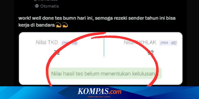KOMPAS.com - Warganet yang sudah mengerjakan tes online tahap 1 Rekrutmen Bersama BUMN 2023 membagikan nilai mereka ke media sosial.