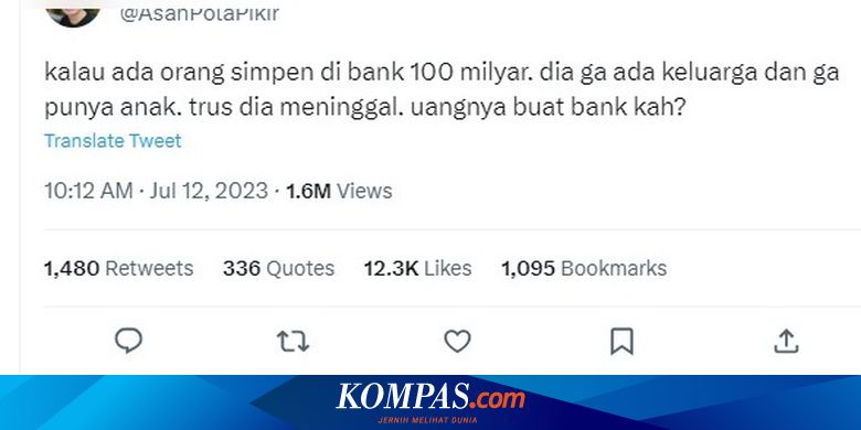 "Kalau ada orang simpen di bank 100 milyar. dia ga ada keluarga dan ga punya anak. trus dia meninggal. uangnya buat bank kah?," tulis pengunggah.