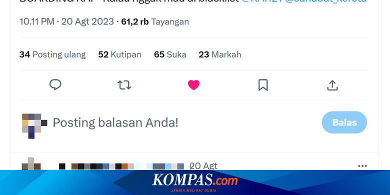 “Terkait adanya postingan Twitter ini, akan kami cek dan pelajari dulu lebih lanjut,” ungkapnya saat dihubungi Kompas.com, Rabu (23/8/2023).