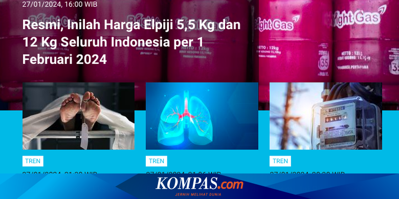 [POPULER TREN] Harga Resmi Elpiji 1 Februari 2024 | Alasan Jurgen Klopp Mundur dari Liverpool Halaman all - KOMPAS.com