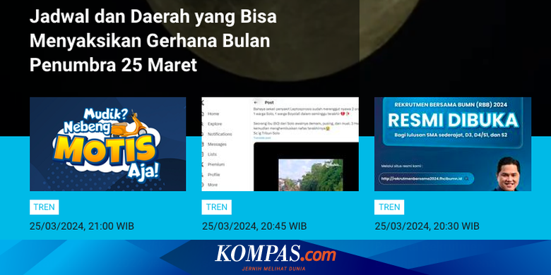 KOMPAS.com - Sejumlah berita menghiasi laman Tren sepanjang Senin (25/3/2024) hingga Selasa (26/3/2024).