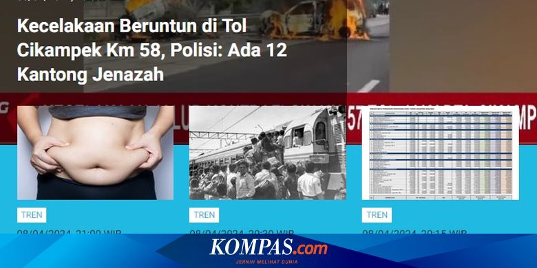 KOMPAS.com - Populer kanal Tren sepanjang Senin (8/4/2024) hingga Selasa (9/4/2024) pagi adalah kronologi dan jumlah korban kecelakaan beruntun di Tol Cikampek Km 58.