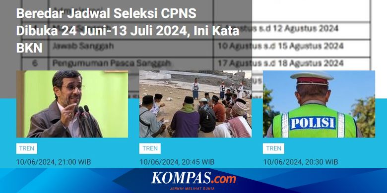 [POPULER TREN] Penjelasan BKN soal Jadwal Seleksi CPNS 2024 | 5 Fakta Polwan Bakar Suami di Mojokerto - Kompas.com - KOMPAS.com